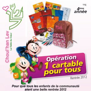 Pour la cinquième année consécutive, Choul’han Lev distribue aux élèves défavorisés un cartable garnis et cela du CP à la terminale.
